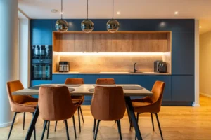 • Tumesinine köögimööbel – luksuslik ja väärikas lahendus, mis sobib avatud planeeringuga kodudes.